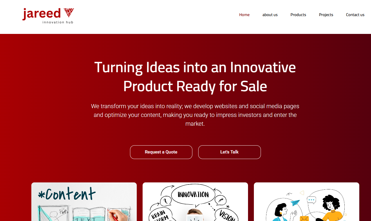 At Jreed Creative Hub, we turn ideas into outstanding projects that make an impact. We craft visual identities and branding that reflect each project's personality. We design websites and carefully define content to ensure a remarkable experience. Through creative thinking, design, and development sessions, we achieve top quality. With our team, your ideas become successful and inspiring projects ready to shine in the market.